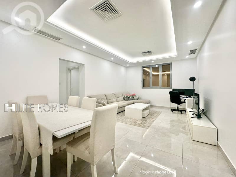 A well-maintained furnished three bedroom apartment is available for rent in the prime residential area of Abu Halifa.