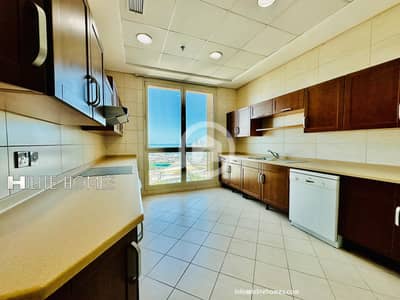 Available- Sea view three bedroom semi furnished full floor apartment for rent in Shaab rent kd 1200
