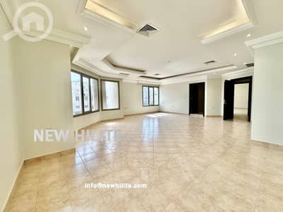 A spacious four-bedroom floor is available for rent in the desirable area of Hateen. It features a large living room, guest toilet, one master bedroom with an en-suite, and three additional bedrooms sharing two bathrooms. The apartment also includes a maid’s room with a bathroom, a store room, and a closed kitchen. Shaded parking is available.