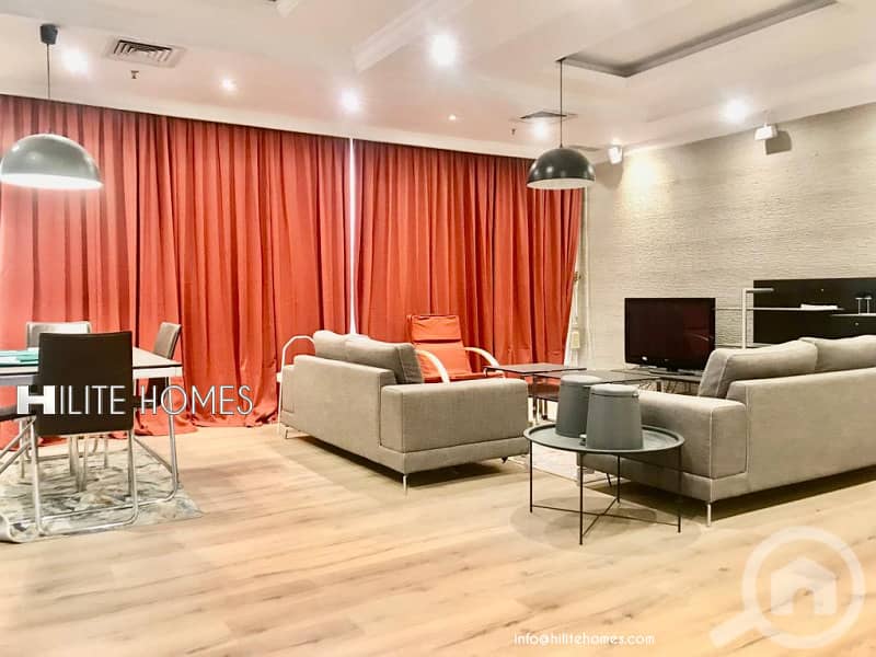 Having two furnished bedrooms, a closed kitchen, and a spacious living room provides ample space for comfortable living. The presence of large windows is a great feature as it allows plenty of natural light to enter the apartment, creating a bright and inviting atmosphere. Natural light can enhance the overall ambiance and make the space feel more open and airy. Other affordable Sea View & City View, furnished & unfurnished apartments are available throughout Kuwait.