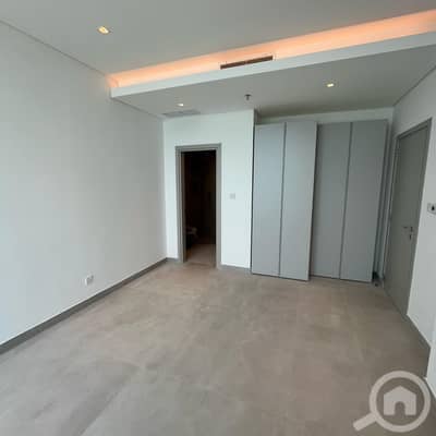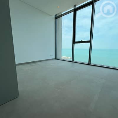 Super deluxe finishing, upscale residential complex, direct sea view with terrace, 2 bedrooms (one master), living room, fully equipped kitchen, 3 bathrooms, 24-hour security, lobby, swimming pool, gym, landscaped gardens, basement parking, including electricity, water, and maintenance.