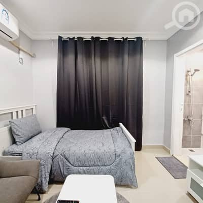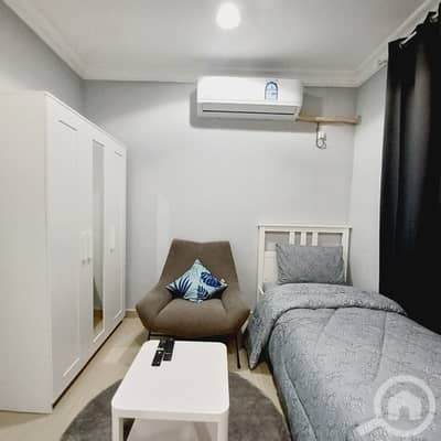 مكون من غرفة نوم ، حمام ، مطبخ ، متوفر بالمبنى مصعد ، لوبي إستقبال ، جيم ، أمن وكاميرات ، إنترنت ، خدمة تنظيف 3 مرات بالأسبوع ، مواقف سيارات ، شامل و كهرباء و صيانة ، للوافدين فقط .