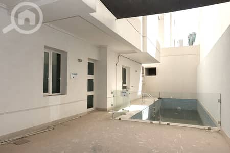 Basement- 2 living rooms , kitchen , maid’s room , outdoor swimming pool , big yard .