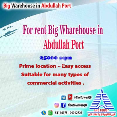 للإيجار مخازن مساحة 25000 م2 بميناء عبد الله