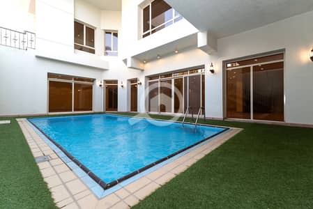 Elegant, spacious villa in Surra, Kuwait – 5 bedrooms, 5 bathrooms, large living and dining area, family lounge w/balcony, wooden kitchen, external kitchen.