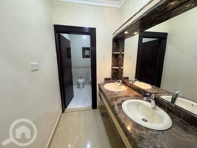 for rent in Egaila area big villa floor with private yard huge living room with guest bathroom and 3 rooms with bathrooms and kitchen maid room 2 shaded car parking