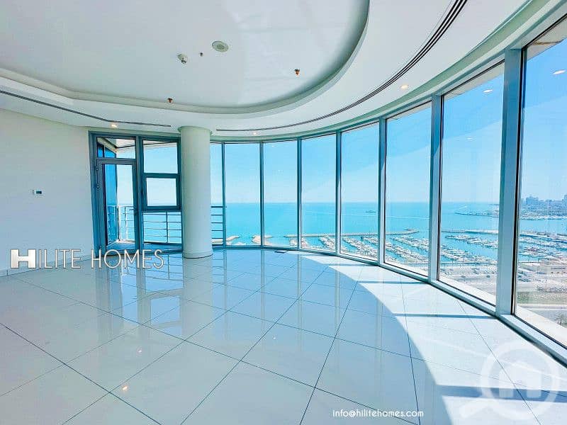 Sea view full floor 3 bedroom modern apartment with balcony-now available for rent, Salmiya.
