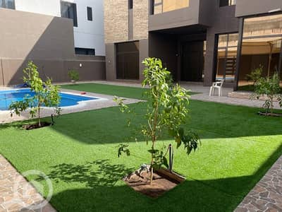 the villa has 5 rooms , all are masters rooms with own bathrooms, , kitchen , 2 rooms sharing one bath and laundry room , maid room with own bath , guest bathrooms ,6 shaded car parking and private garden and pool
