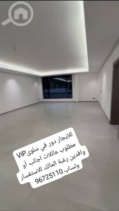 For rent: Large first floor apartment with elevator in Salwa. Spacious layout, luxurious VIP finishing, super deluxe panoramic view. Consists of 4 master bedrooms (all 5x6 meters), a large living room (15x6 meters), a kitchen, a maid's room with bathroom, and a laundry room. Rent is 1000 dinars, negotiable. Families or expats only, as per owner's preference. For inquiries, please contact the owner via WhatsApp at . p