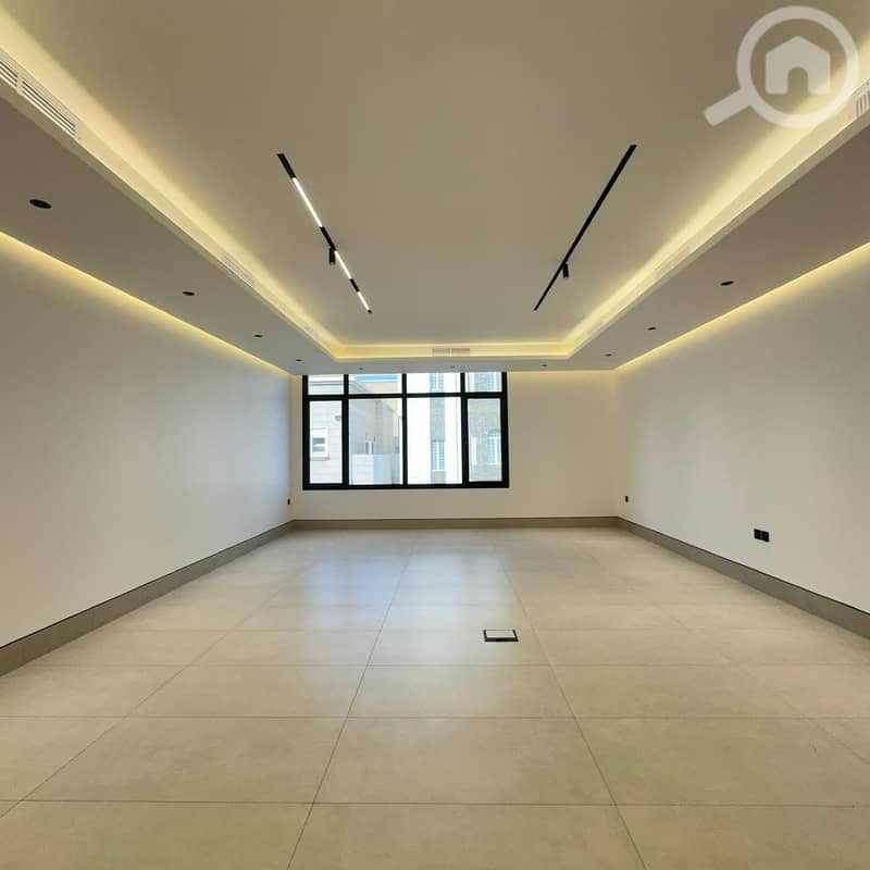 Excellent location, easy access, spacious layout, high-end super deluxe finishing, consisting of 4 master bedrooms (2 with dressing rooms), a large living room, a kitchen, a total of 6 bathrooms (including a guest bathroom with a washbasin), a maid's room with its own bathroom, an elevator, a dedicated parking space, and a yard next to the house. Electricity, water, and AC maintenance are included.