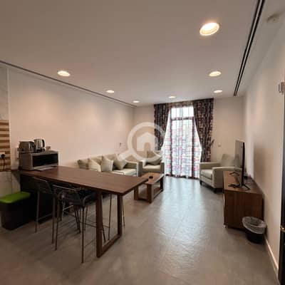 التشطيب سوبر ديلوكس ، مكونة من صالة ، مطبخ امريكي مجهز بالكامل ، 1 غرفة نوم ماستر ، مجموع الحمامات 2 منهم حمام الضيوف ، متوفر في المبنى مسبح ، جيم ، نظام امن و مراقبة 24 ساعة ، كاميرات مراقبة ، موقف سيارة مخصص مظلل ، شامل ماء و كهرباء و صيانة ، التأجير للعائلات فقط .
