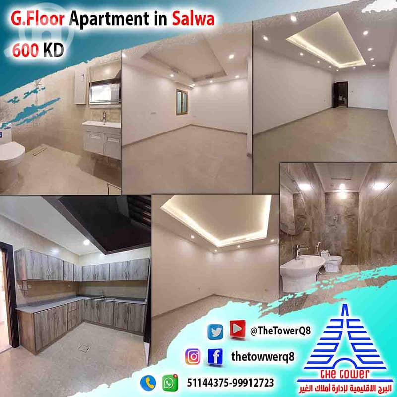 For rent in Salwa ground floor apartment with private enterance – 2 streets villa with spacious setback – Super deluxe finishing – 4 master bedrooms – Hall with guest bathroom – Nanny’s room with bathroom –equipped kitchen – Shaded parking.