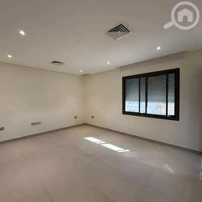 Prime location, super deluxe finishing. It consists of two living rooms (one a family room), a kitchen, four master bedrooms, a total of seven bathrooms (including a guest bathroom with a washroom), a maid's room with its own bathroom, a laundry room, a small storage room, a diwaniya (reception area) with outdoor seating and its own bathroom, and a kitchenette. The building features a security camera system, a dedicated elevator, shutters, central heating, and four covered parking spaces. Water, electricity, and AC maintenance are included. For families only.