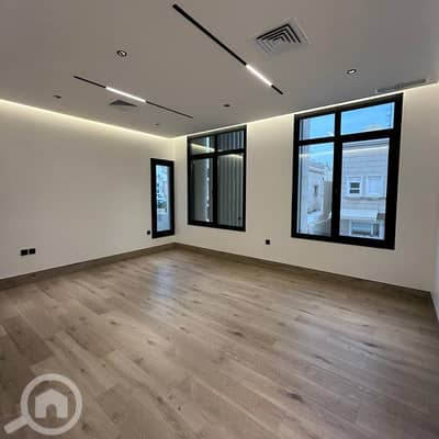 Prime location, easy access, spacious layout, high-end super deluxe finishing. It features 3 master bedrooms with dressing rooms, 2 courtyards, a living room, a kitchen, 5 bathrooms (including a guest bathroom with a washbasin), a maid's room with its own bathroom, a laundry room, an elevator, a dedicated parking space, and a yard next to the house. Electricity, water, and AC maintenance are included. Families only.