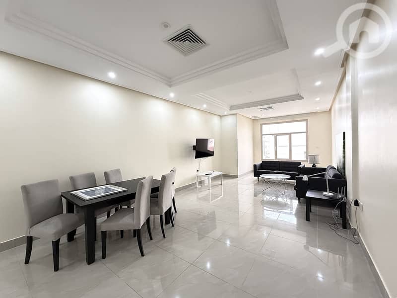 Great, large semi furnished apartment for rent in Masayel, Kuwait – 3 bedrooms, 2.5 bathrooms, living room, kitchen.