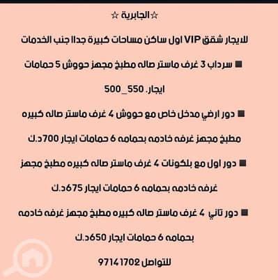 KWD650MonthlyApartment46Area:250 Sq. M.للأيجار شقق في الجابرية والرميثيه اول ساكن تشطيب VIP موقع مميزAl Jabriya, Kuwait City Email Call